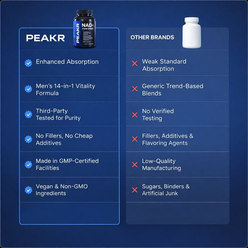 Your vitality shouldn't be a gamble. Try PEAKR for 60 days and feel the difference for yourself or get your money back with no questions asked.
